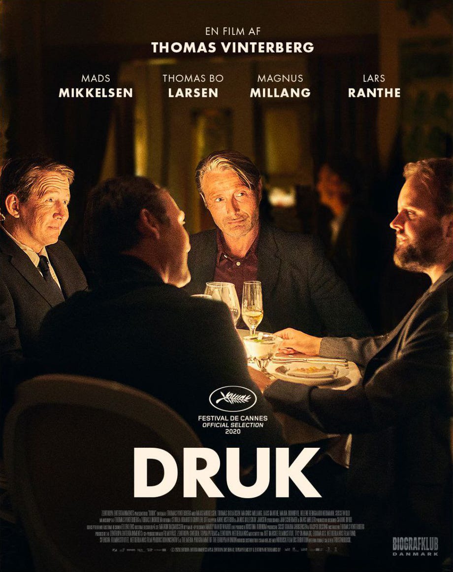 Négy kiégett és/vagy életközepi válsággal küzdő középiskolai tanár úgy dönt, hogy élesben letesztelnek egy pszichológiai elméletet, miszerint egy enyhe spicces állapot szükséges ahhoz, hogy jobban boldoguljunk az élet minden frontján. A kísérlet spontán módosítása nem várt fordulatot hoz. Thomas Vinterbergnek a 2020-as Cannes-i Filmfesztiválra időzített drámája a komoly téma ellenére könnyen fogyasztható, és nagyon szerethető. SPOILERMENTES élménybeszámoló.